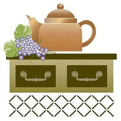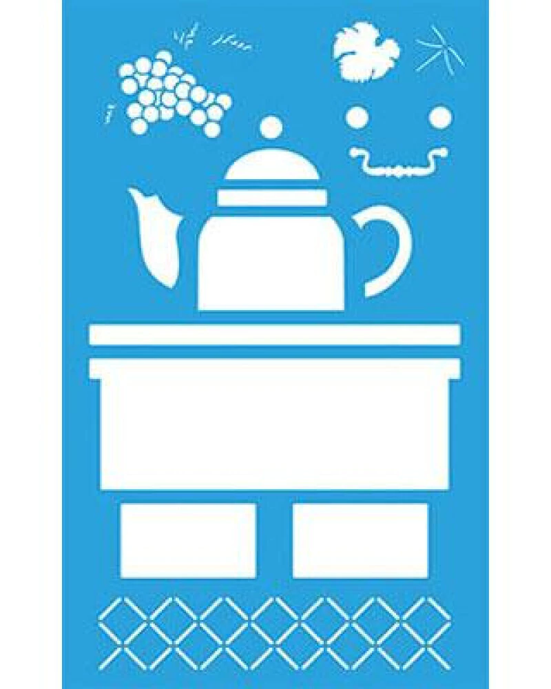 Este stencil ST 089 Bule e Gavetas Sobreposição II é composto de material 100% em acetato, onde é bastante flexível facilitando sua aplicação em várias superfícies como tecido, papel, madeira, parede, cerâmica, metal ou etc.