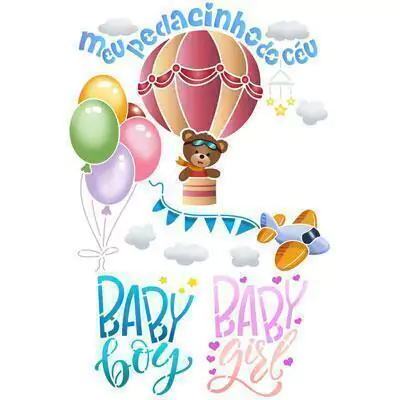 Stencil Litoarte ST-442 Infantil Ursinho no Balão é composto de material 100% em acetato, onde é bastante flexível facilitando sua aplicação em várias superfícies como tecido, papel, madeira, parede, cerâmica, metal ou etc.