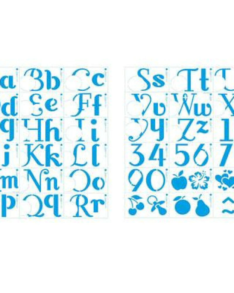 Este stencil ST4-001 Alfabeto, Números e Ornamentos é composto de material 100% em acetato, onde é bastante flexível facilitando sua aplicação em várias superfícies como tecido, papel, madeira, parede, cerâmica, metal ou etc.