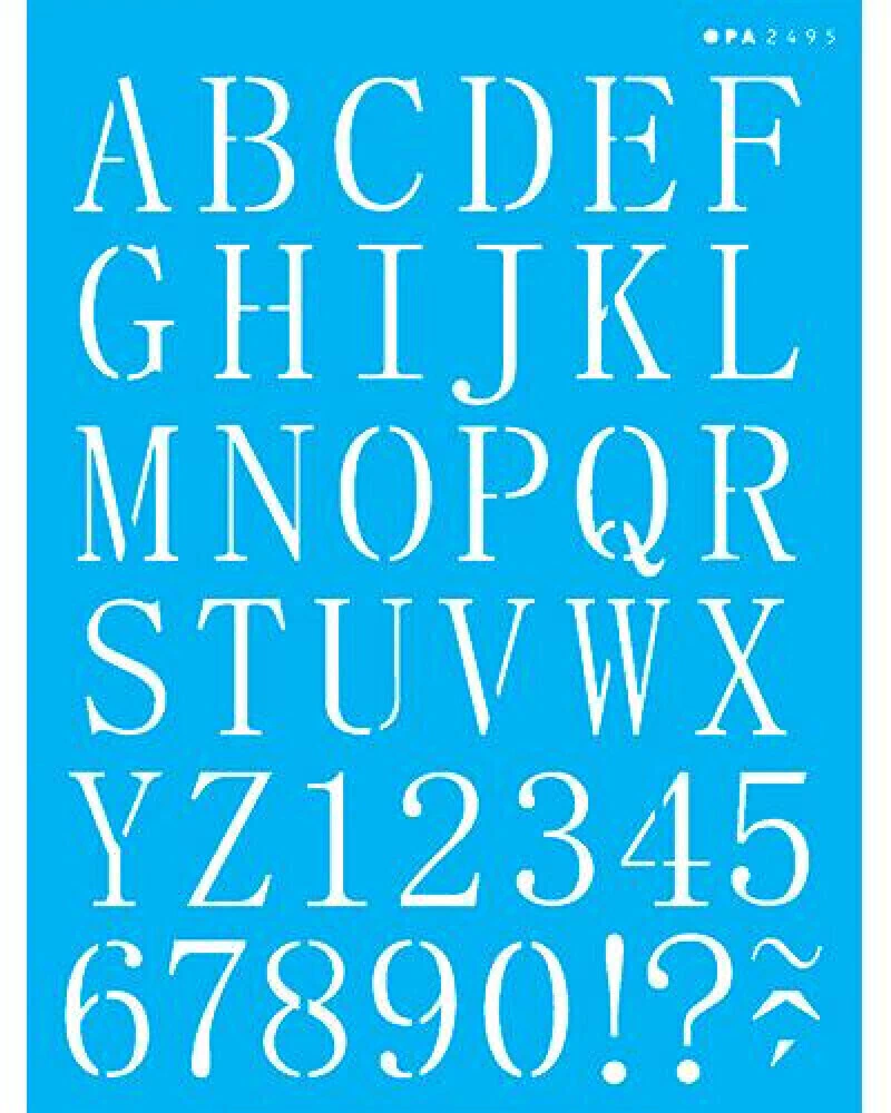 Este stencil OPA2495 Alfabeto Reto Maiúsculo é composto de material 100% em acetato, onde é bastante flexível facilitando sua aplicação em várias superfícies como tecido, papel, madeira, parede, cerâmica, metal ou etc.