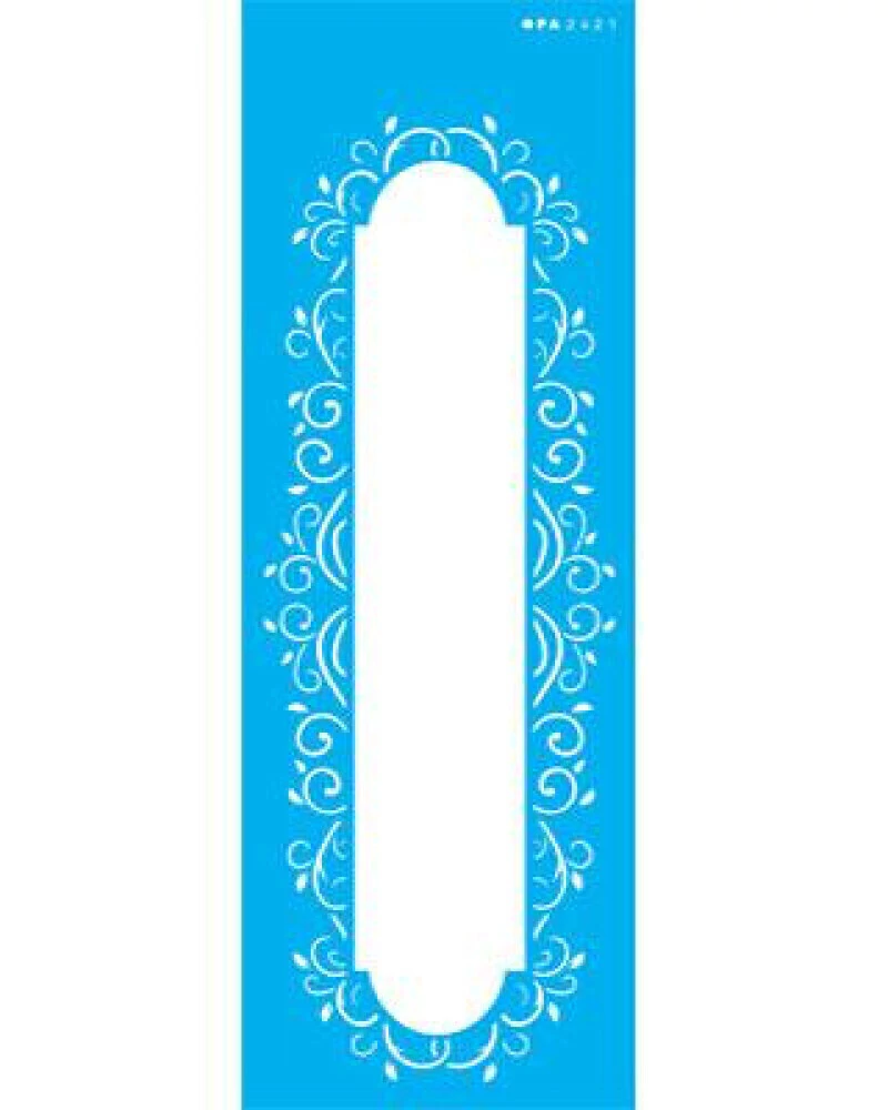 Este stencil simples Moldura Arabesco II é composto de material 100% em acetato, onde é bastante flexível facilitando sua aplicação em várias superfícies como tecido, papel, madeira, parede, cerâmica, metal ou etc.