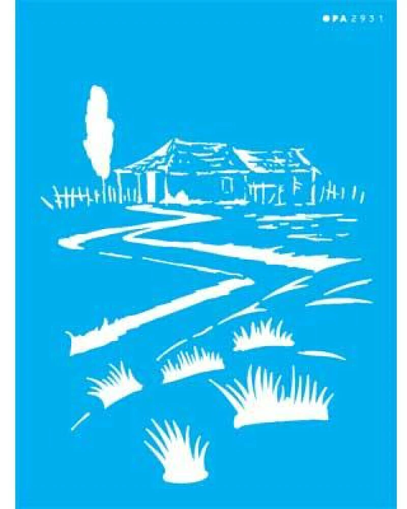 Este stencil simples Country Brasil Casa II é composto de material 100% em acetato, onde é bastante flexível facilitando sua aplicação em várias superfícies como tecido, papel, madeira, parede, cerâmica, metal ou etc.
