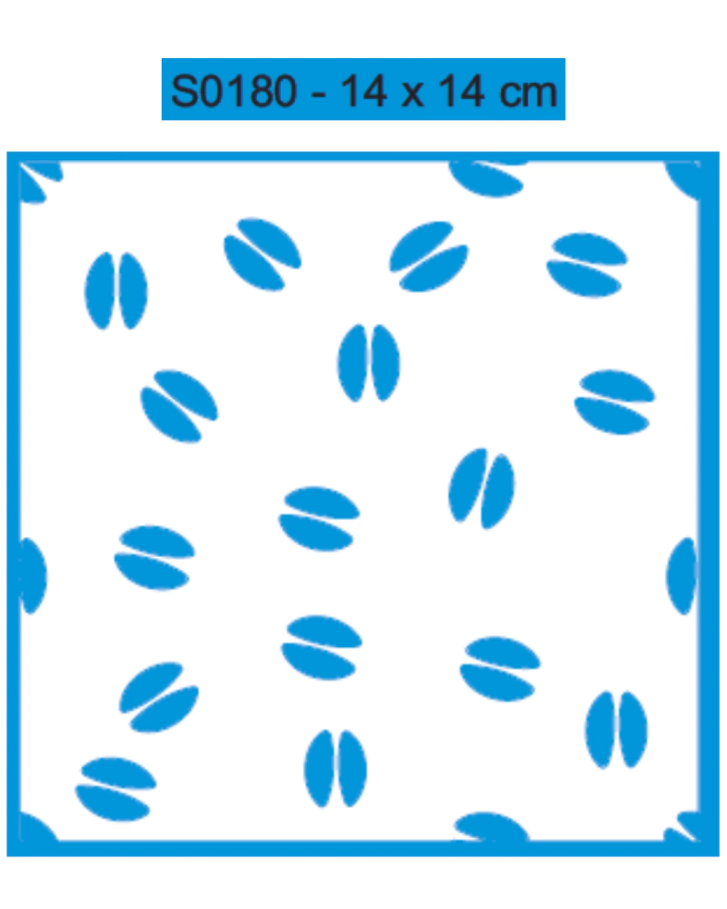 Este stencil Estampa Grãos de Café é composto de material 100% em acetato branco, onde é bastante flexível facilitando sua aplicação em várias superfícies como tecido, papel, madeira, parede, cerâmica, metal ou etc.