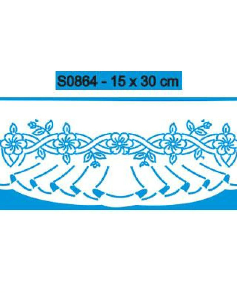 Stencil S0864 - Barrado Falso de Ramos e Flores - 15X30 cm
