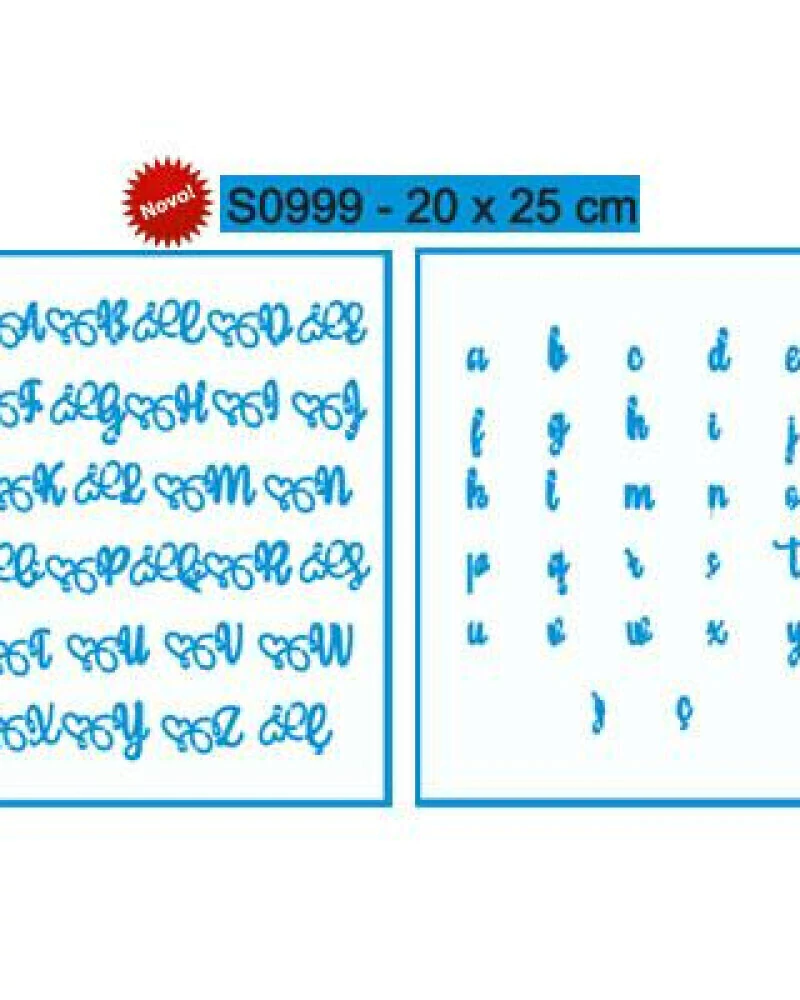 Stencil S0999 Alfabeto Maiúsculo e Minúsculo Coração - 20x25cm