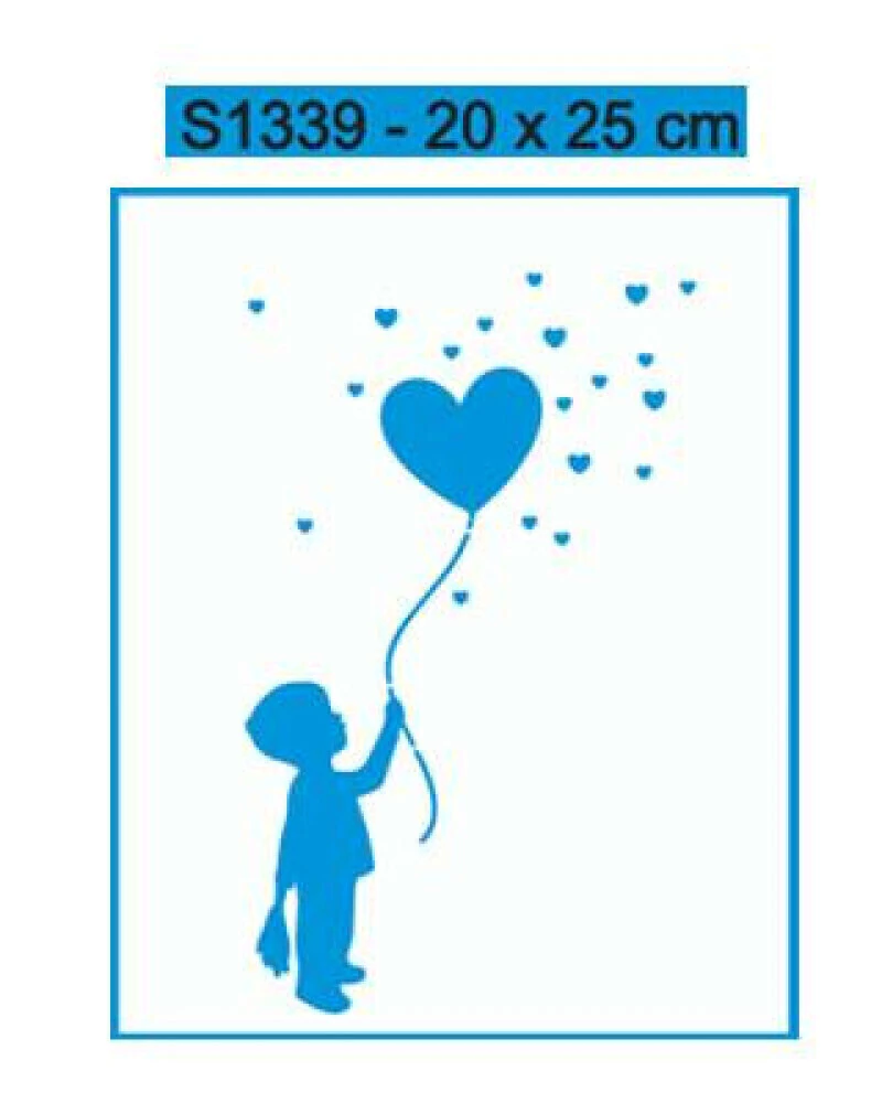 Stencil S1339 Menino com Balão de Coração - 20x25cm