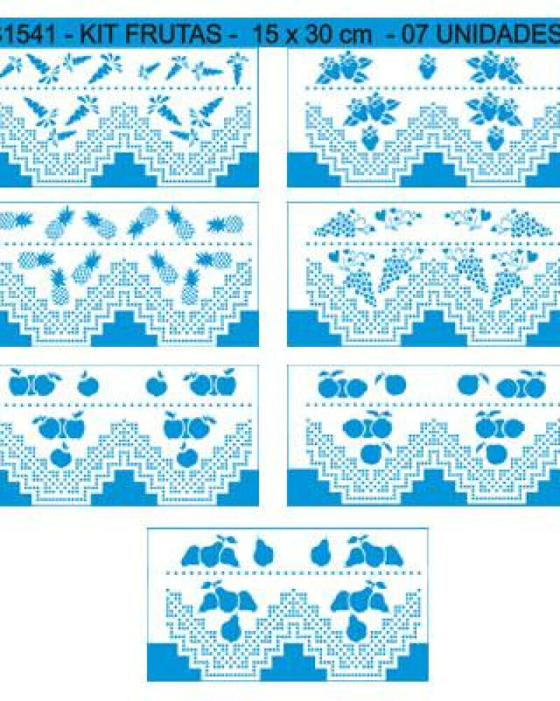 O Kit Barrado Frutas Falso Crochê - S1541 é composto de 7 peças em material 100% em acetato branco, onde é bastante flexível facilitando sua aplicação em várias superfícies como tecido, papel, madeira, parede, cerâmica, metal ou etc.