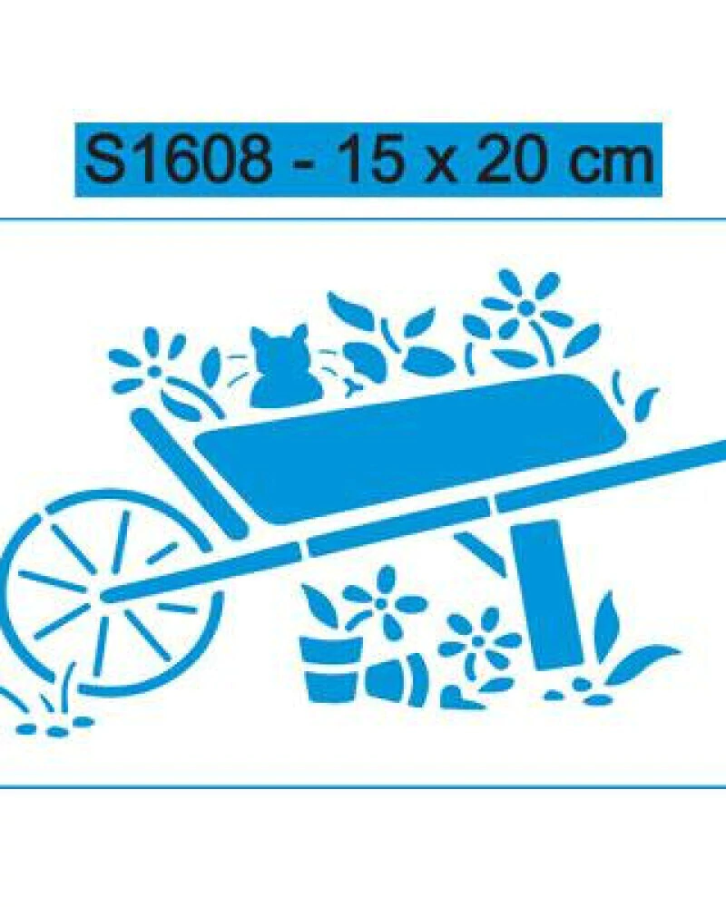 Stencil Carrinho de Mão com Flores - S1608 - 15x20cm