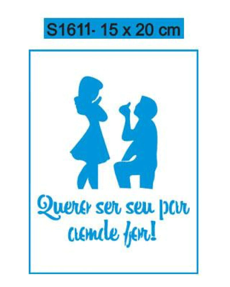 Este stencil Casal, Quero ser seu par... é composto de material 100% em acetato branco, onde é bastante flexível facilitando sua aplicação em várias superfícies como tecido, papel, madeira, parede, cerâmica, metal ou etc.