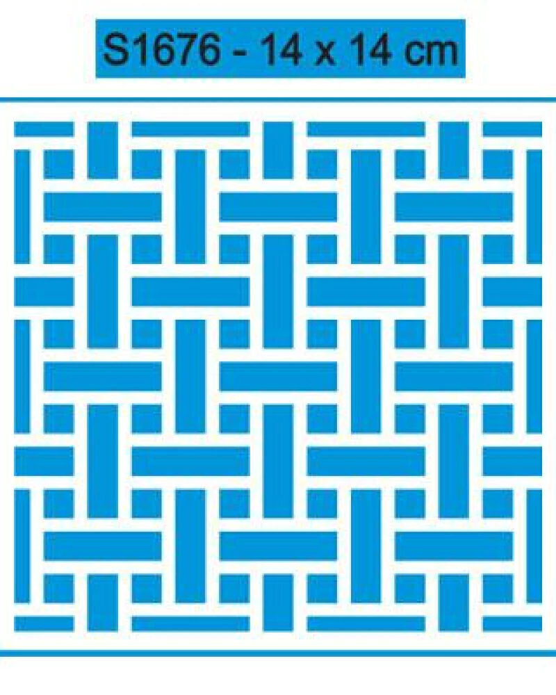 Este stencil Estampa Trama é composto de material 100% em acetato branco, onde é bastante flexível facilitando sua aplicação em várias superfícies como tecido, papel, madeira, parede, cerâmica, metal ou etc.